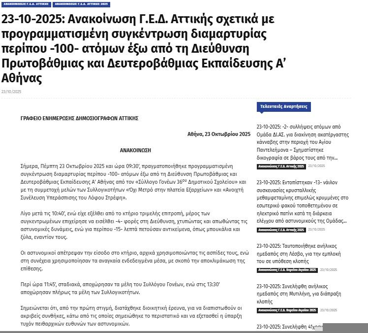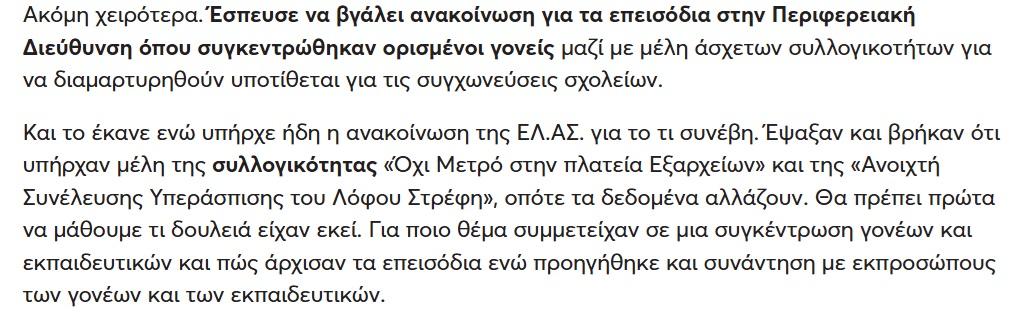 Ότι την κινητοποίηση στη Διεύθυνση Πρωτοβάθμιας στο Μεταξουργείο την οργάνωσαν ο σύλλογος γονέων του 36ου Δημοτικού, η Ανοιχτή Συνέλευση “Όχι μετρό στην πλατεία Εξαρχείων” και η συνέλευσή μας…