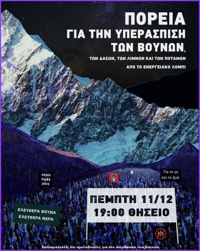Θα είμαστε και εμείς στην πορεία υπεράσπισης των βουνών. Ενάντια στην ανάπτυξη, τη λεηλασία και την ιδιωτικοποίηση.