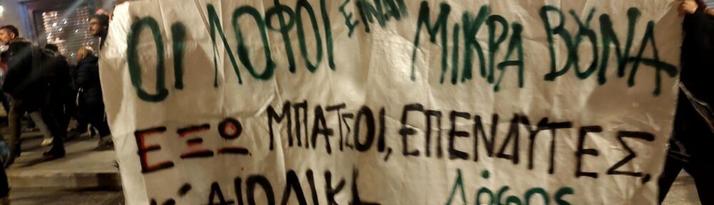 Οι αγώνες ενάντια στην εξαπλωτική μανία του κεφαλαίου πάνω στη φύση και στους ελεύθερους χώρους στις πόλεις μας, δεν είναι πολυτέλεια. Είναι αγώνες για την ίδια τη ζωή.