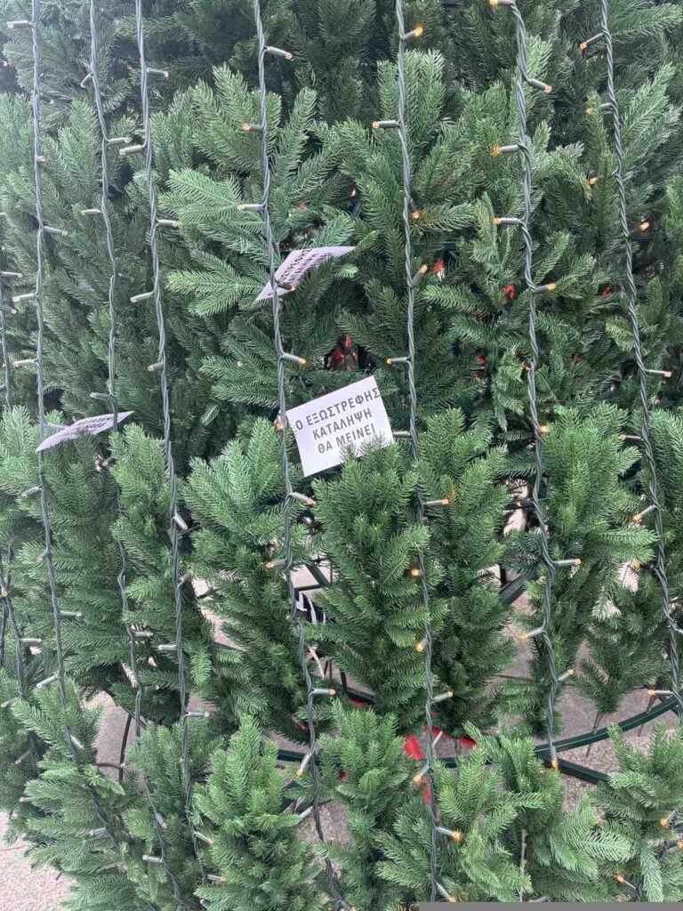 ΥΓ. Το διαφημισμένο ως δωρεάν, χριστουγεννιάτικο χωριό του Δήμου, είναι μια μεγάλη απάτη. Υπάρχει μόνο ένα καρουζέλ δωρεάν, το οποίο λειτουργεί απλά ως κράχτης για τα μαγαζιά που στεγάζονται σε ξύλινα σπιτάκια, με πανάκριβες και απαγορευτικές τιμές. Όλες οι κατασκευές και ο στολισμός, είναι χορηγίες του ξενοδοχείου «Μεγάλη Βρετανία» (του Λασκαρίδη) και της Protergia (του Μυτιληναίου), όπως ανακοινώθηκε από τα μικρόφωνα της εκδήλωσης, μαζί με τα ευχαριστήρια του δημάρχου στις εταιρίες.