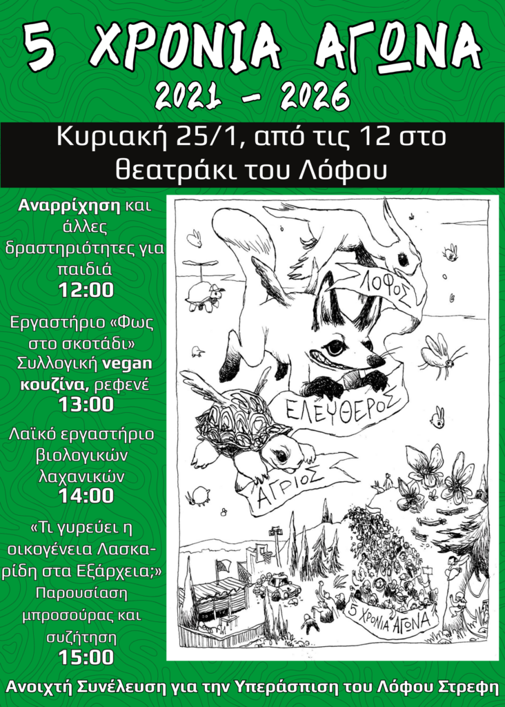 Την Κυριακή 25/1/2026 γιορτάζουμε 5 χρόνια αγώνα για την υπεράσπιση του Λόφου Στρέφη.